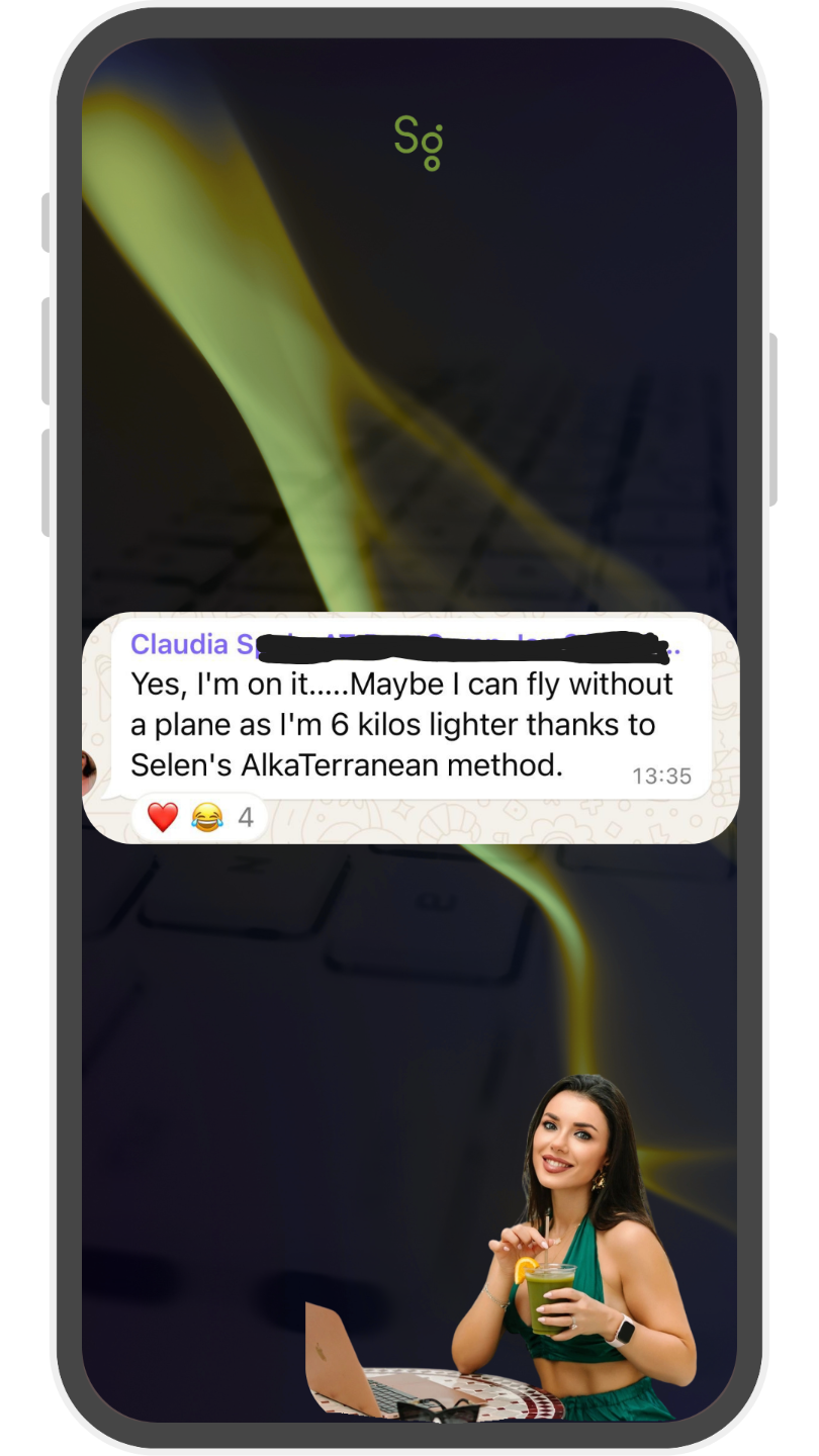 Your intelligent weight-loss assistant, trained with my Alka-Terranean Method® that helped over 10,000 people to lose weight fast, and keep it off. This AI is not just trained with my method, but also my coaching approach, my frameworks and my 10,000+ clients data.